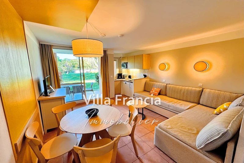 Heart stroke !!! Mandelieu, in a superb, secure residence with gardens, on the banks of the Siagne. You can admire the boats passing from your terrace with beautiful 2 rooms + cabin of 41 m², air-conditioned. Parking in the condominium. Sold rented. Guaranteed annual rent € 7,086. Of this...