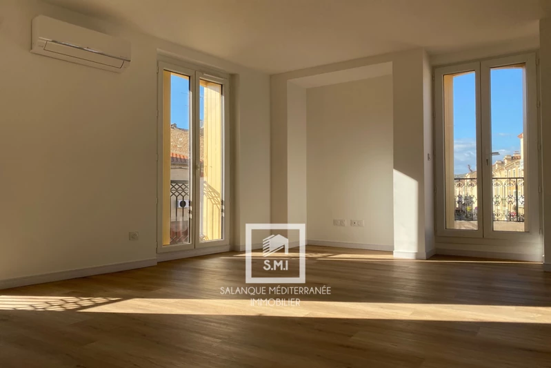 For rent - Renovated 3-room apartment - Salses-le-château This fully renovated 3-room apartment, on the first floor of a small building, is located in the town centre of Salses-le-Château. It consists of two bedrooms, a living room, a fitted kitchen and a shower room with WC. It also has a...