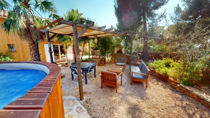 This 100 m² living space, perched above La Ciotat's heights and built in 2006, offers a peaceful and welcoming lifestyle just 2 minutes from shops: landscaped garden with stunning terraces, approximately 500 m², above-ground pool, pizza...