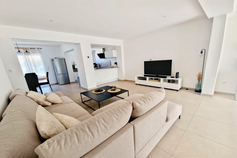 In the heart of Aygual, privilege: rare through house outside residence of approximately 85 m2 raised on one floor comprising on the ground floor: an entrance opening onto a living room of 25m2, an independent equipped kitchen of 15 m2, a bedroom...
