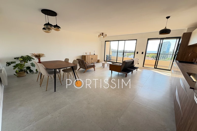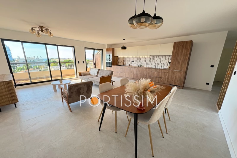 In a high-end residence right in the heart of Les Vespins, close to the beaches, we offer for sale this very beautiful top floor 4-room apartment overlooking both sides,