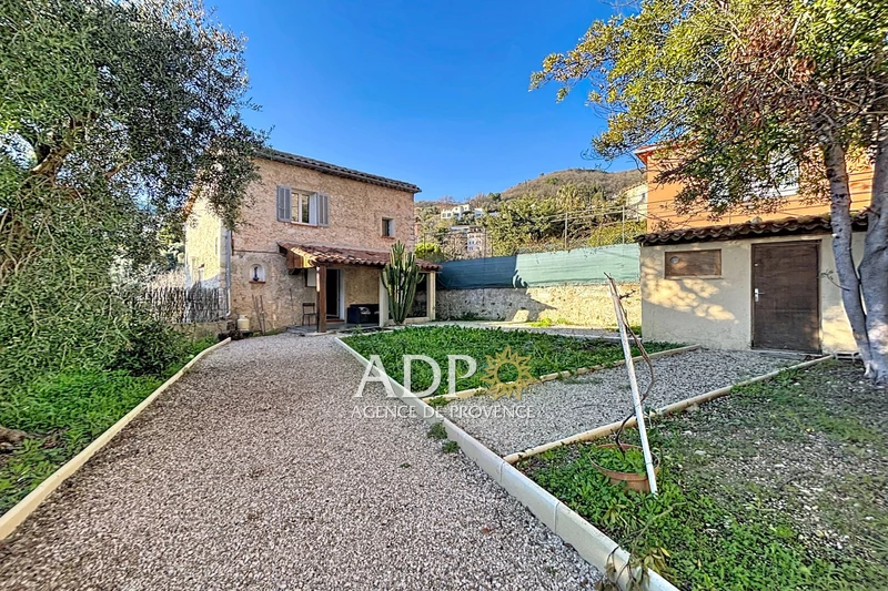 In a quiet setting, in the charming village of Magagnosc, a house with a garden featuring on the garden level a living room with kitchen; upstairs, two bedrooms, a shower room, and a toilet. On the ground floor, two bedrooms, one with a shower...