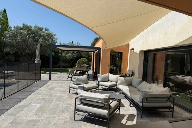 Beautiful family villa of approximately 165 m², almost entirely on one level, featuring 5 bedrooms, a pool, and a double garage, set on a landscaped 1,000 m² plot, renovated by an architect in 2021. Spacious rooms and high-end...