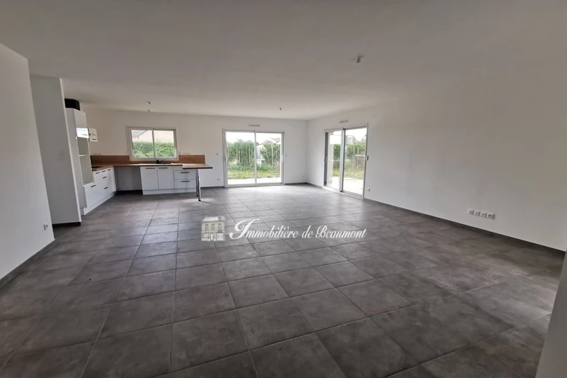 Single-story house built in 2023 for rent in ECARDENVILLE LA CAMPAGNE, featuring an entrance hall, a laundry room, an open kitchen overlooking the...