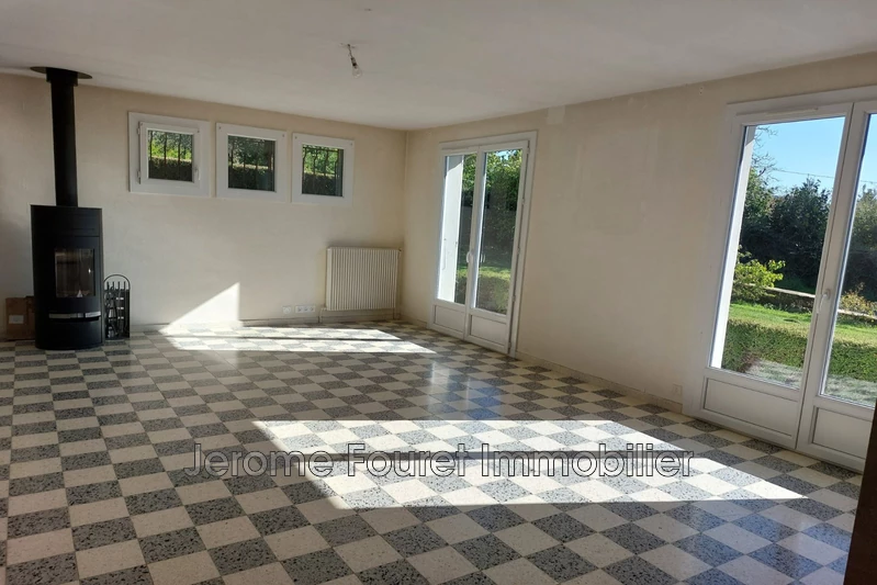 ROSIERS D EGLETONS - House located 5 minutes from Egletons, featuring a main room with a wood stove and office space, pantry, kitchen with terrace access, hallway with storage closets, 3 bedrooms including one with a wardrobe, shower room, and...