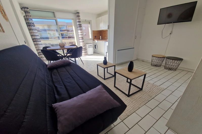 CANET PLAGE 66140 Studio with a sea view. On the 5th floor with elevator, in a secured residence with a caretaker. Consisting of a bright living...