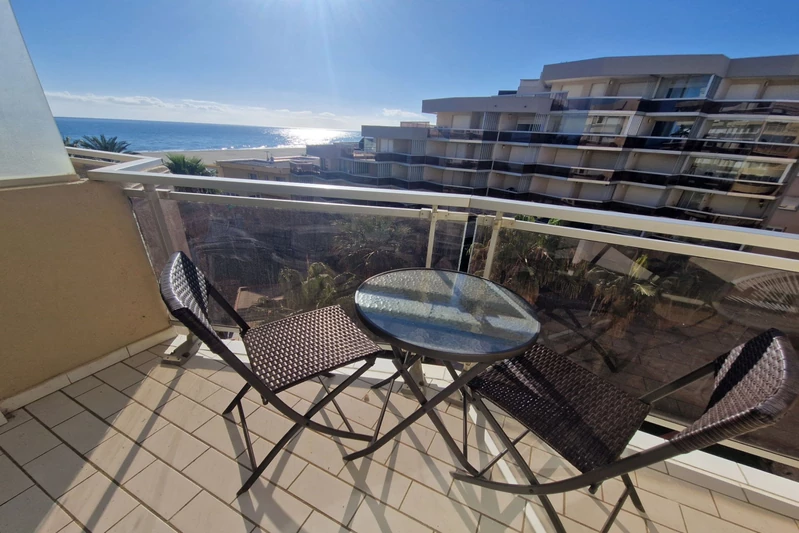 CANET PLAGE 66140 Studio with a sea view. On the 5th floor with elevator, in a secured residence with a caretaker. Consisting of a bright living area with a fully equipped kitchen opening onto a terrace and a bathroom with toilet. The building's facade has just been refurbished.