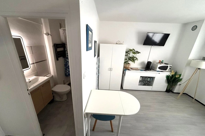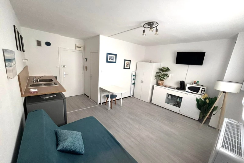EXCLUSIVE - IN SECURE RESIDENCE 100M FROM THE BEACHES AND SHOPS - PRETTY STUDIO WITH EQUIPPED KITCHEN AREA - BATHROOM WITH WC - A TERRACE - REVERSIBLE AIR CONDITIONING - FURNISHED -