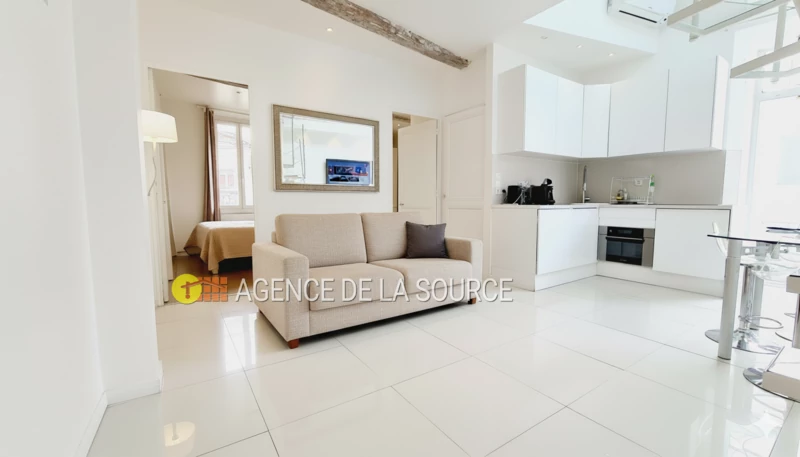 In the heart of Villa Francia, in the main building, steeped in history, beautiful studio of 38.68 m² Carrez law, upstairs, furnished and equipped, with a parking space at the foot of the building. End of rental contract on 09/30/2025 Charming, pedestrian residence with superb gardens and an infinity pool. Ideal...