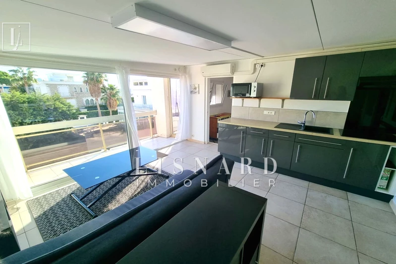 Living room and kitchen opening onto a large south-facing garden, a bedroom with built-in wardrobes, bathroom with corner bathtub, separate toilet. Reversible air conditioning.