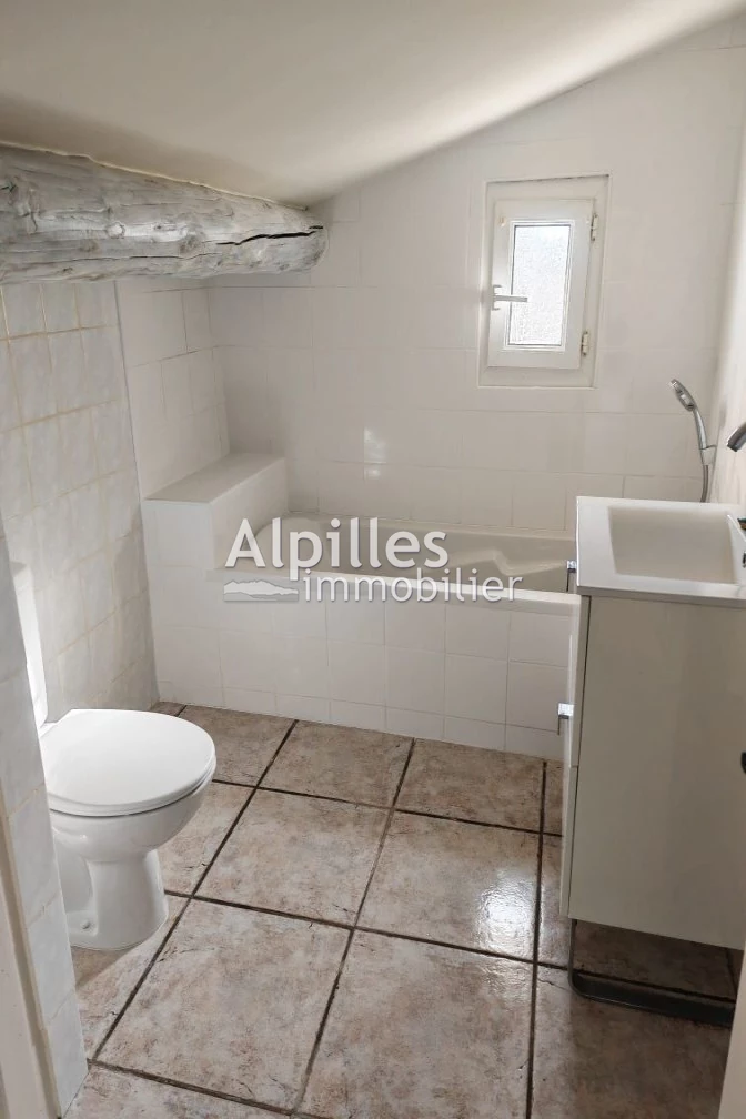 On the first floor of a building, beautiful duplex apartment of 39m² featuring a recently fitted and equipped kitchen (extractor hood, hob, and oven) open to the living area with access to a covered balcony overlooking the Alpilles. Toilet with closet. Upstairs, a bedroom and a bathroom with WC. In the attic, a storage space. On the ground floor, a parking space with storage shelves in a garage shared with other tenants.