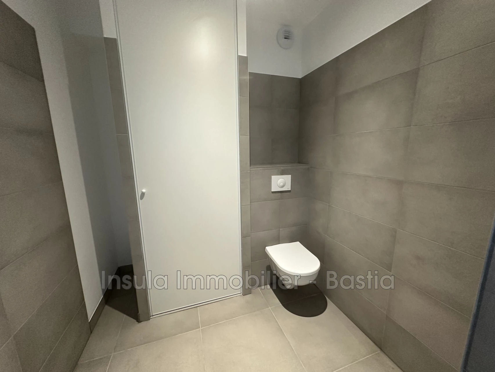 Within a recently built 2024 residence located in Querciolo, a T2-type apartment of 42.48 m². On the second floor, it features a living room with a kitchen area opening onto a large covered terrace of 19.25 m², a bedroom, and a bathroom with a toilet.