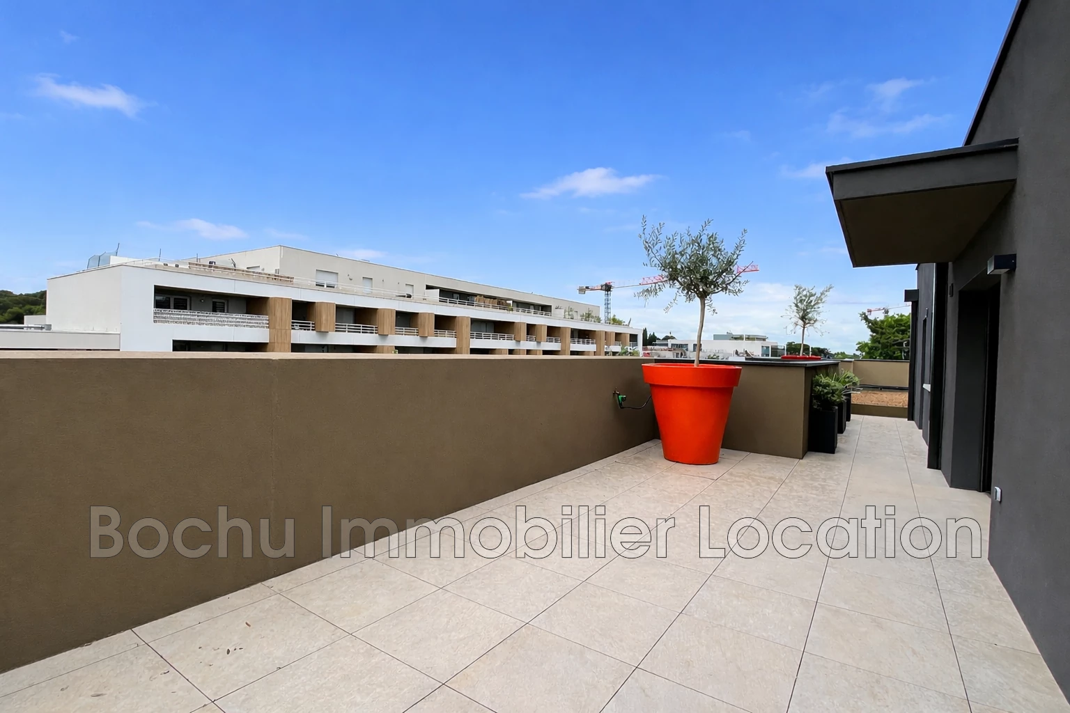 CASTELNAU-LE-LEZ – SABLASSOU, a 3-room rooftop apartment of 61 m² for rent with a terrace and a 110 m² garden on the top floor of a modern building.