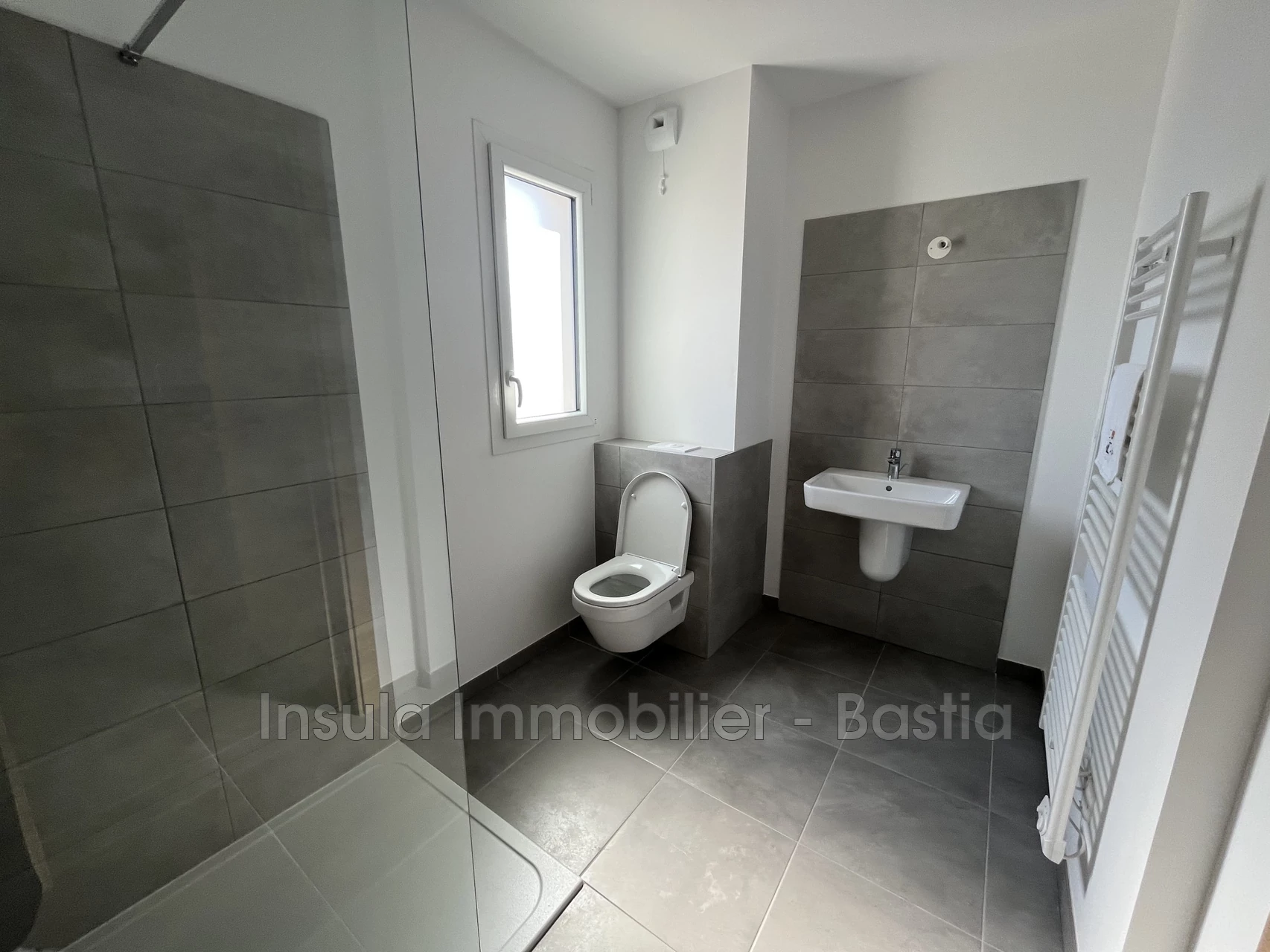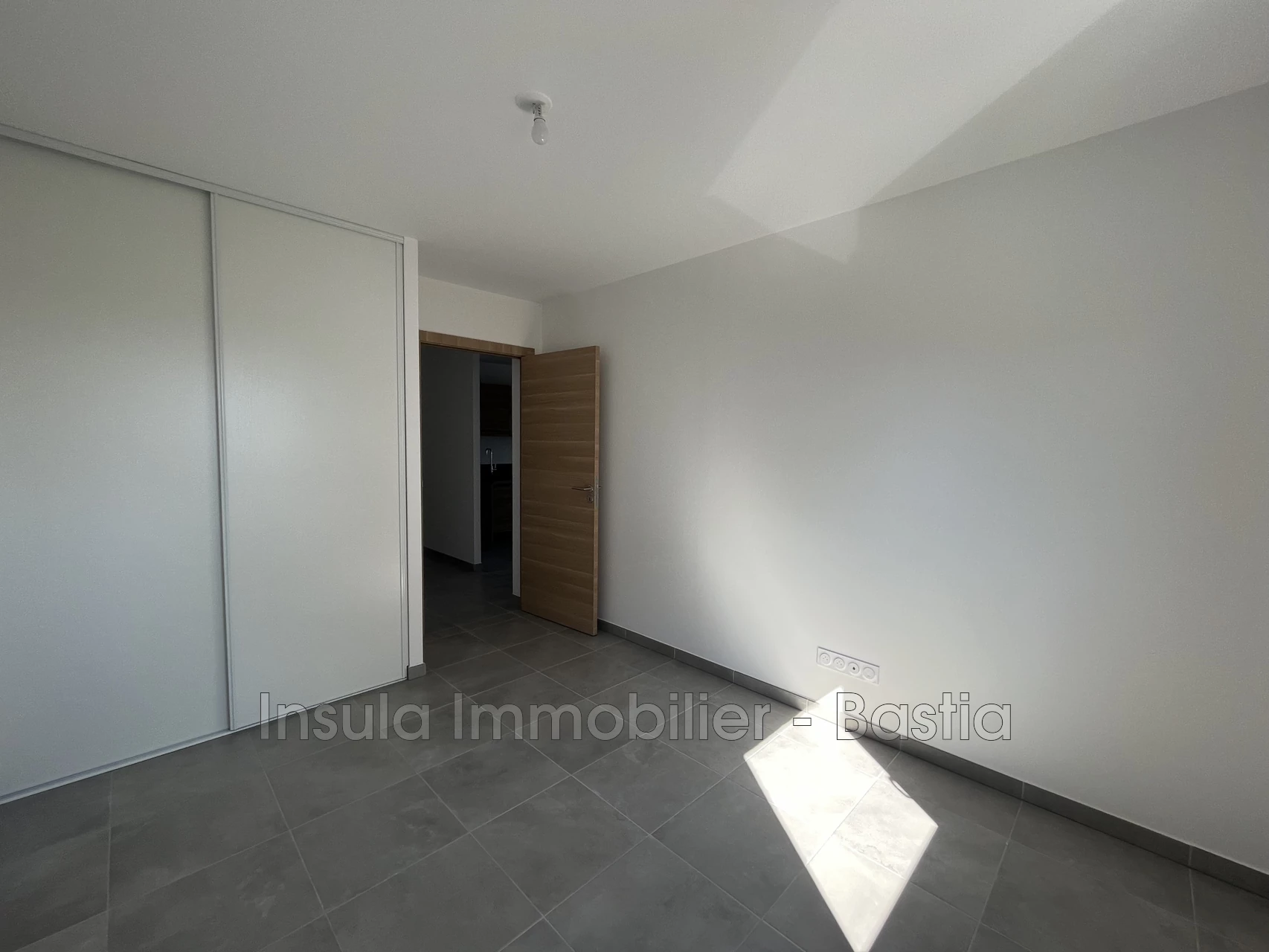 Within a modern residence, close to all amenities, a fully air-conditioned 3-room apartment featuring a living room with a fitted kitchen, two bedrooms with built-in wardrobes, a bathroom with toilet, and a large terrace of 18 m². Two private parking spaces.
