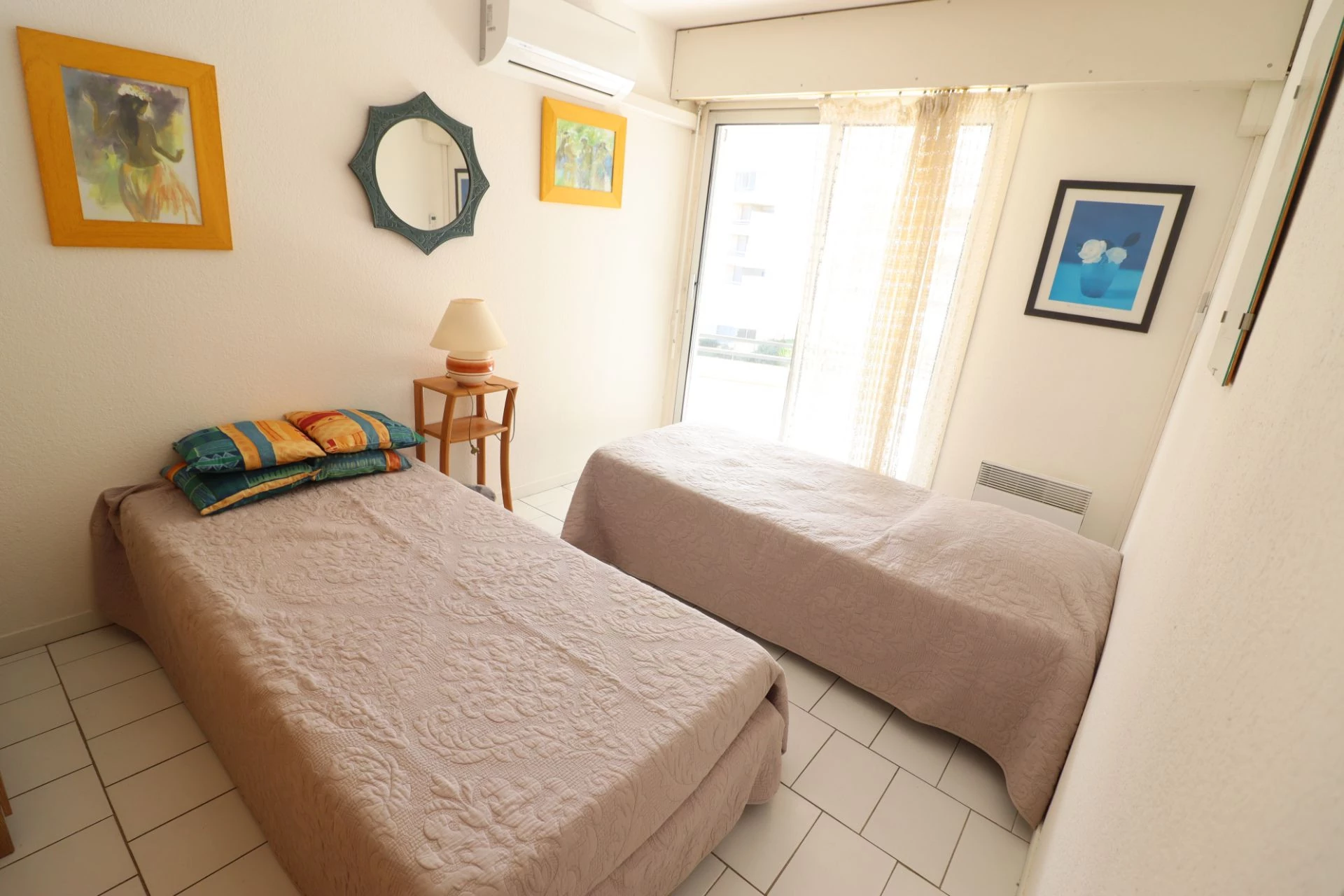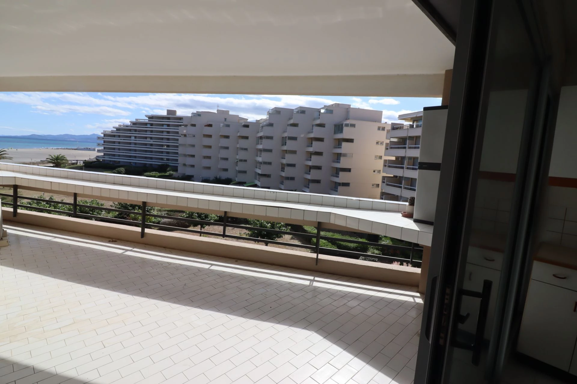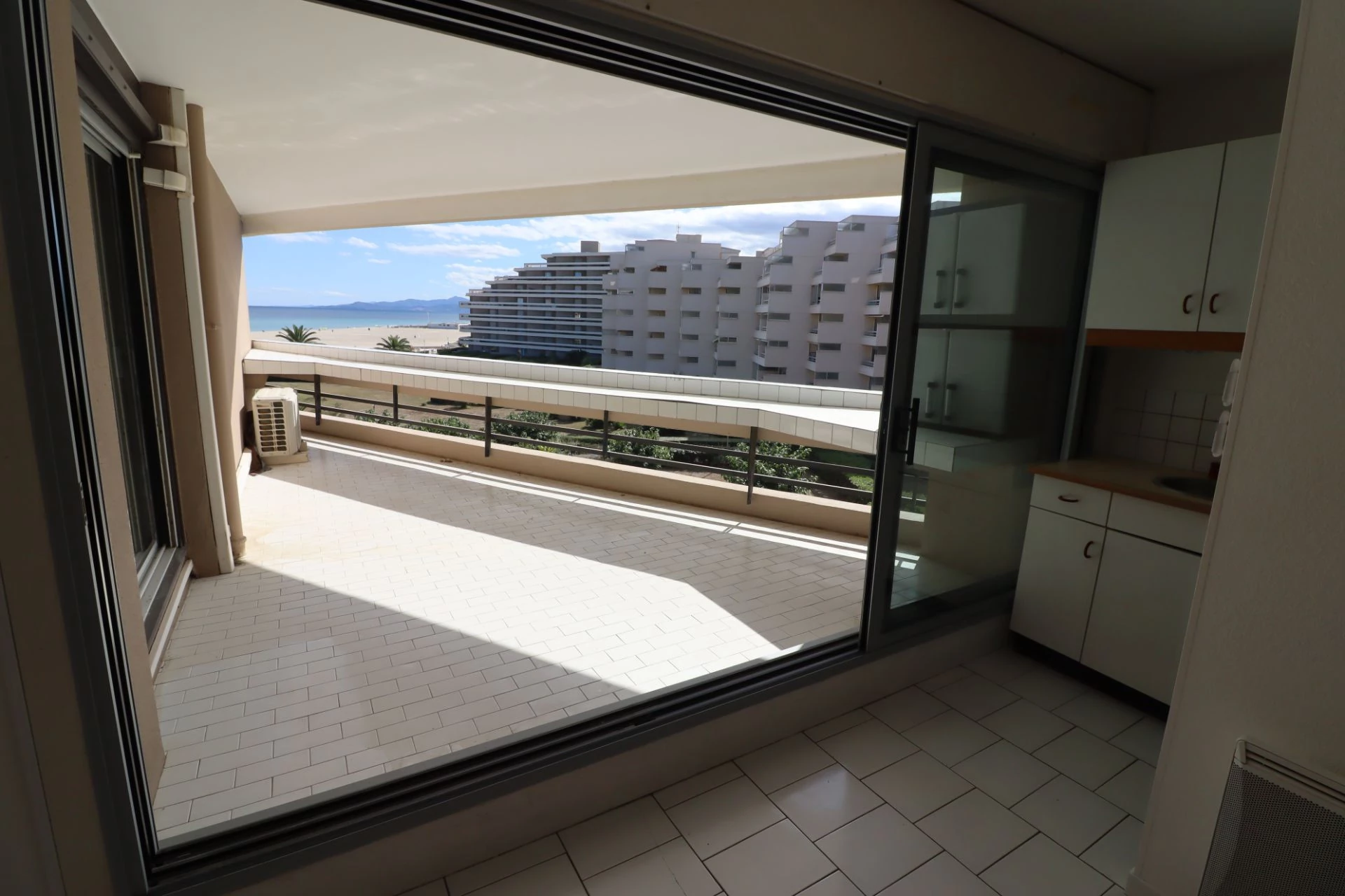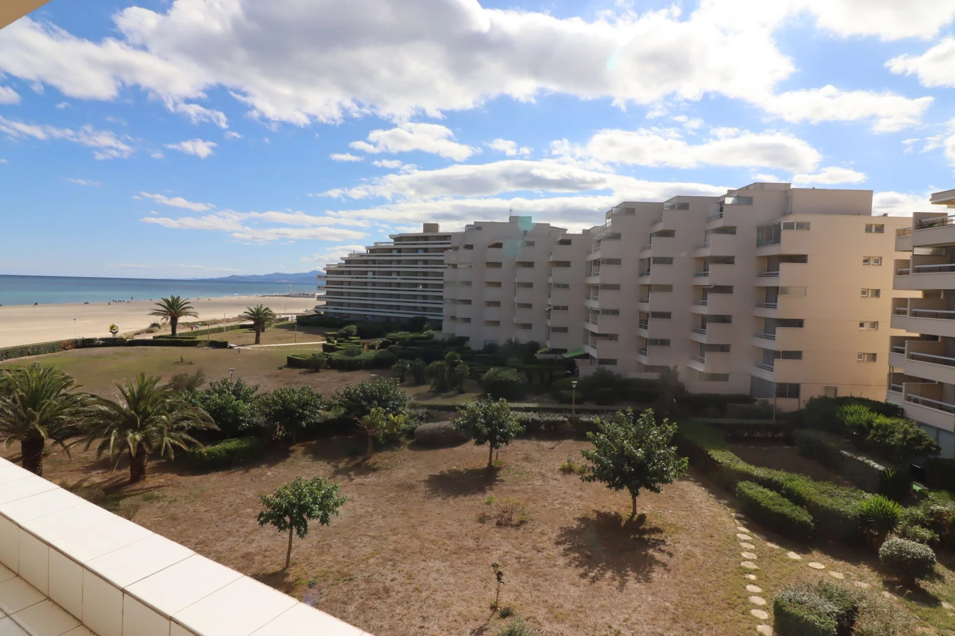 66150 Canet Plage, Exclusive Canet South, direct beach access, on the 3rd floor with elevator, a T2-style apartment featuring an entrance with a closet, a bathroom with a heated towel rail, separate toilet, one bedroom, a laundry room, a living room, a terrace with a sea view on the south side, and a fully equipped kitchen. Double garage available additionally for €55,000.