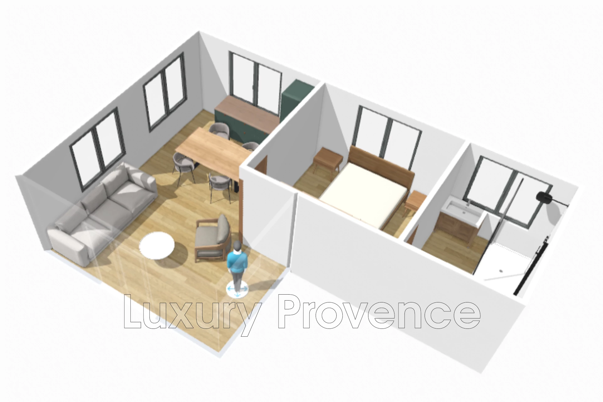 Your local agency offers for sale this top-floor villa apartment of about 40m², featuring 1 bedroom and a lovely south-facing garden of approximately 75m² with a solid shed