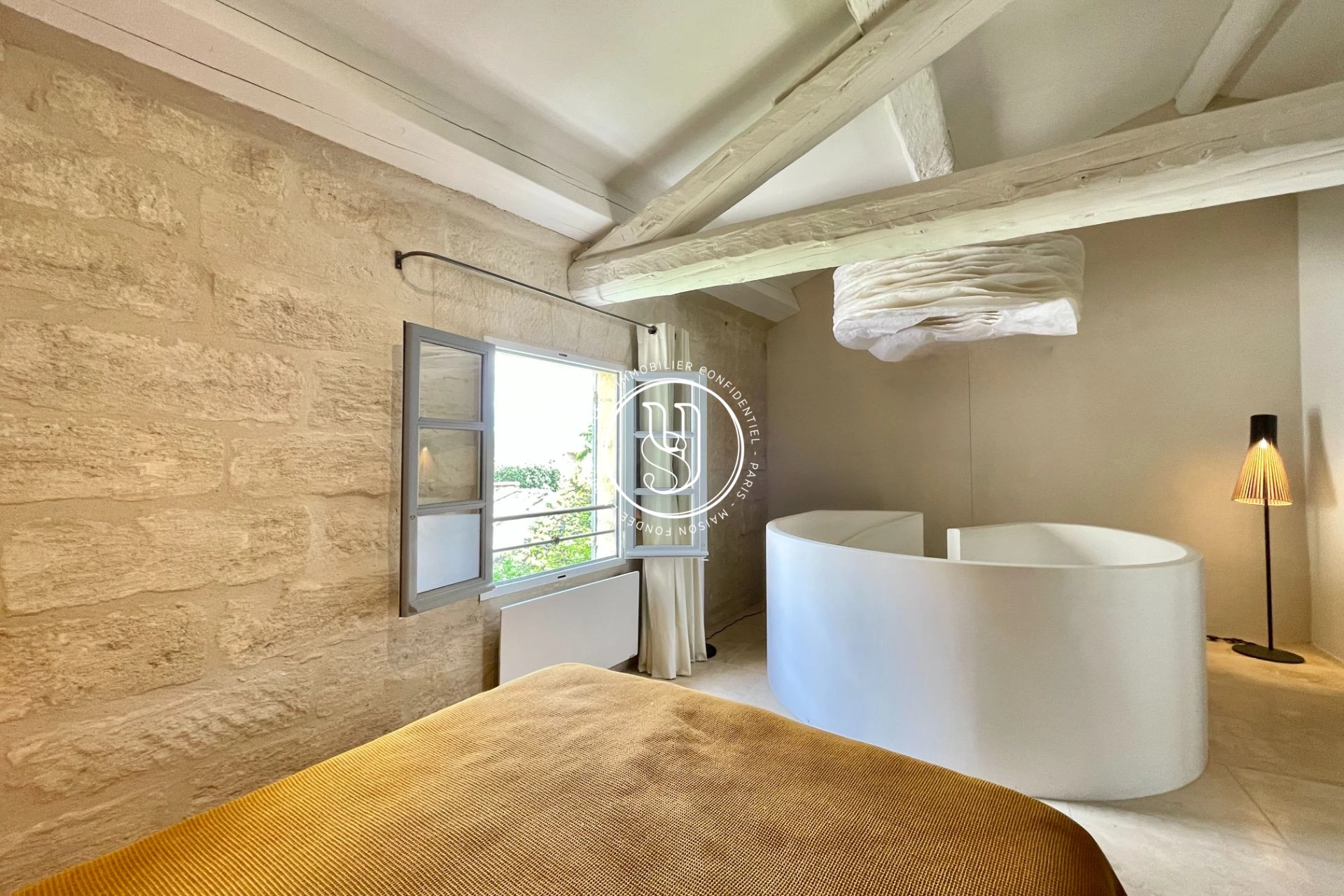 Located on a quiet and exclusive street in the historic center of Uzès, this stunning apartment, fully renovated, presents a rare blend of charm and contemporary style. The apartment is part of an iconic townhouse set on a peaceful street, featuring a magnificent courtyard and a beautifully maintained communal garden for the residents.