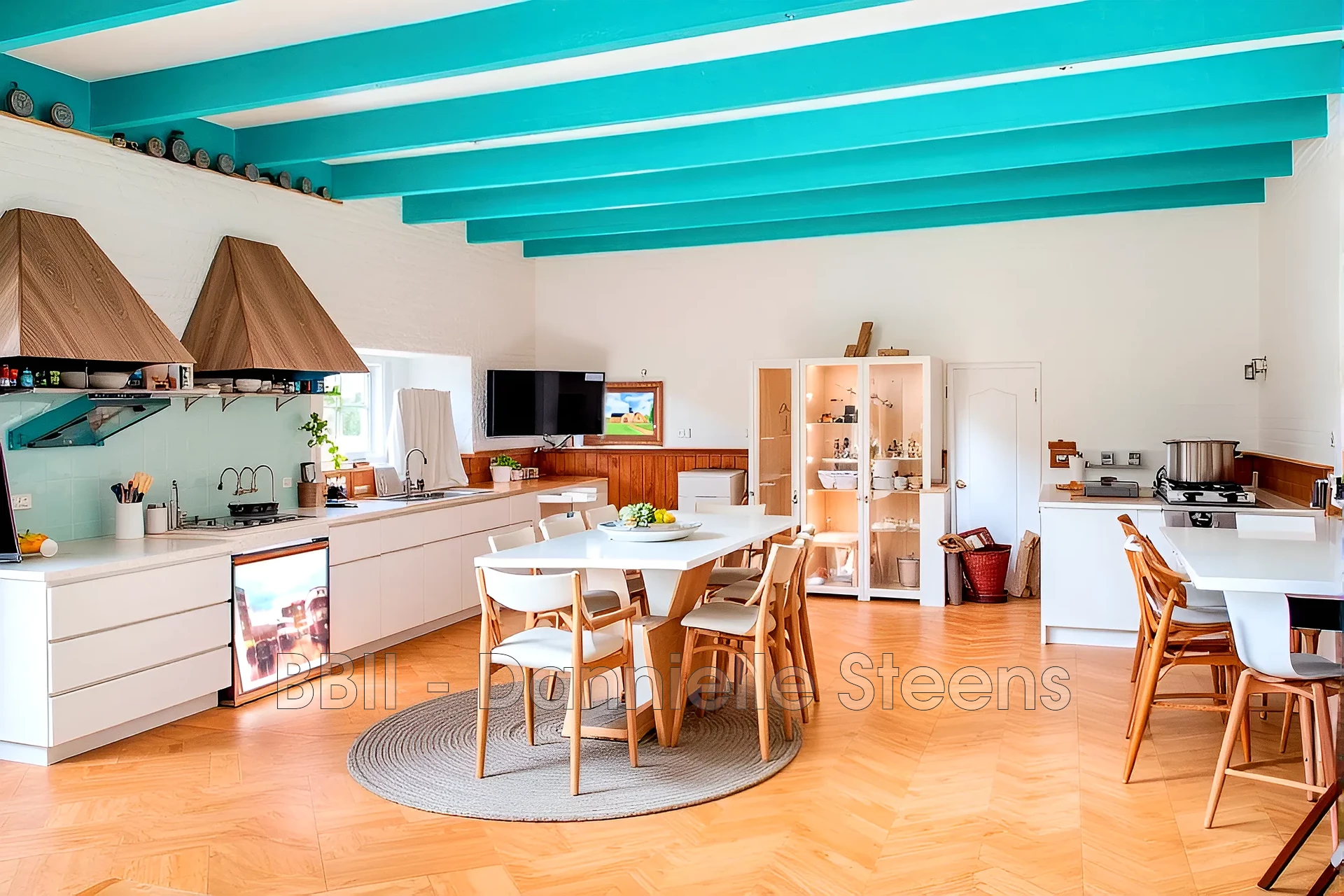 The small 35m² house on the ground floor was formerly a creperie. It can be used as an office or any other business space (parking in front). The joinery is new, but the interior remains to be arranged.