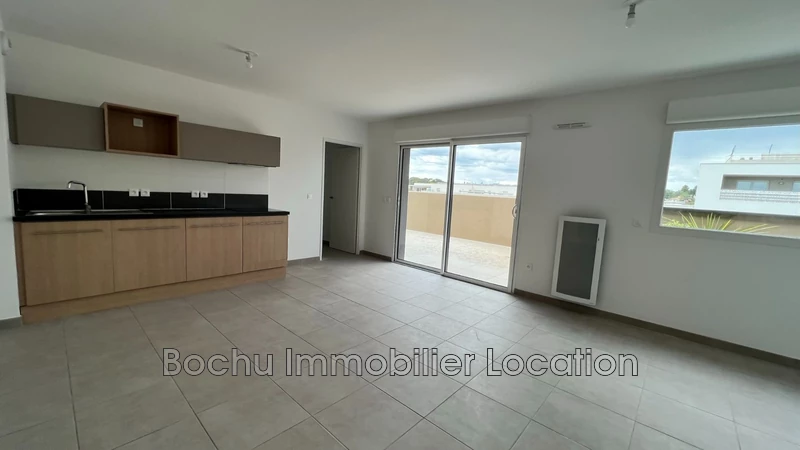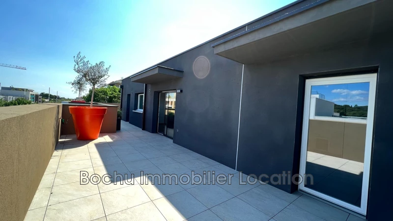 CASTELNAU-LE-LEZ – SABLASSOU, a T3 rooftop apartment of 61 m² for rent with a terrace and a 110 m² garden on the top floor of a modern building.
