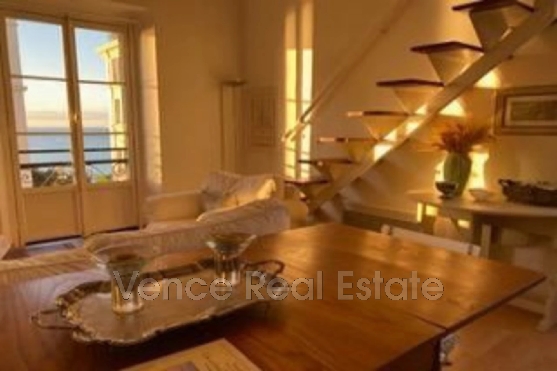Downtown, just steps from the Promenade des Anglais, in a prestigious building on the 4th floor with elevator, discover this stunning duplex: spacious living room with open kitchen, sea view, bedroom, bathroom with WC, and on the mezzanine, a large open area that can be used, for example, as an office. Seasonal rental available by the month or week. Guarantees required. Contact us for more information.