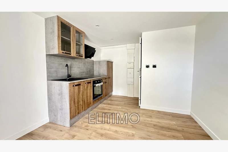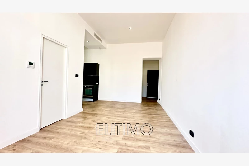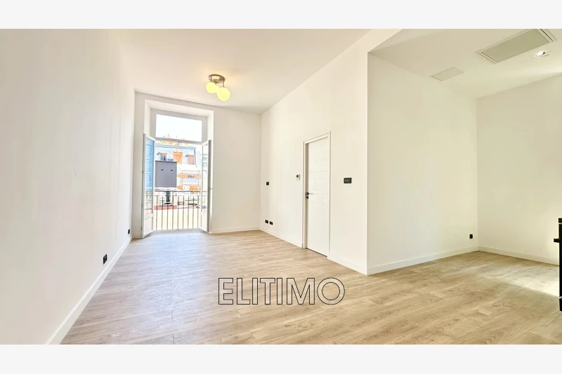 Apartment featuring a double entrance hall with closets, living room with fitted open kitchen, one bedroom, bathroom, toilet, and balcony.