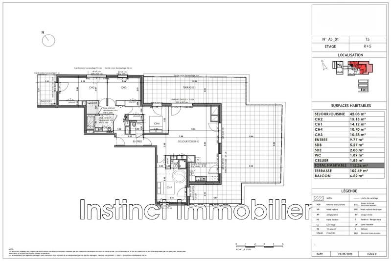 New 5-Room Apartment – 113.36 m² – Balcony 6.52 m² – 2 Parking Spaces – Rennes – Delivery Q1 2026