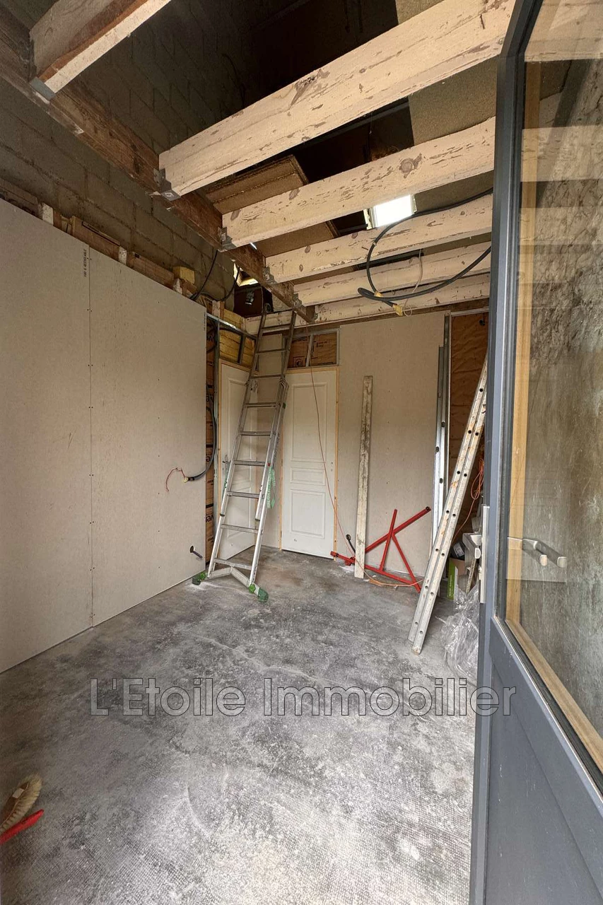 - A main house: entrance (to be finished), living room with a partially vaulted ceiling and wood stove, open to the kitchen, shower room with WC, boiler room, bedroom; mezzanine used as a bedroom and 2 attics (insulated with hardwood floors);