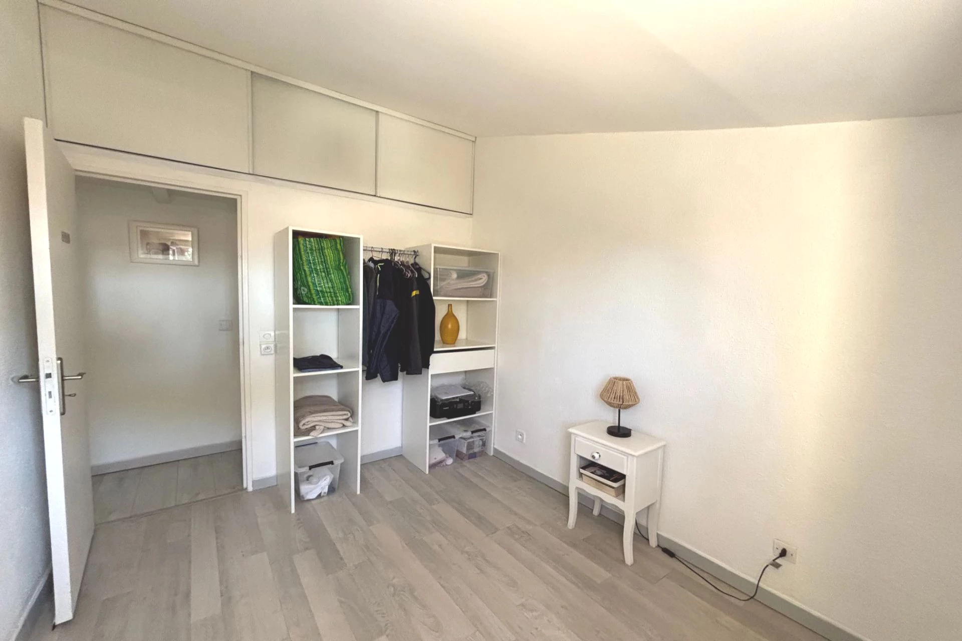 You enter the living area, with a fully equipped kitchen and a bright lounge, the first bedroom with a closet, and a separate toilet.