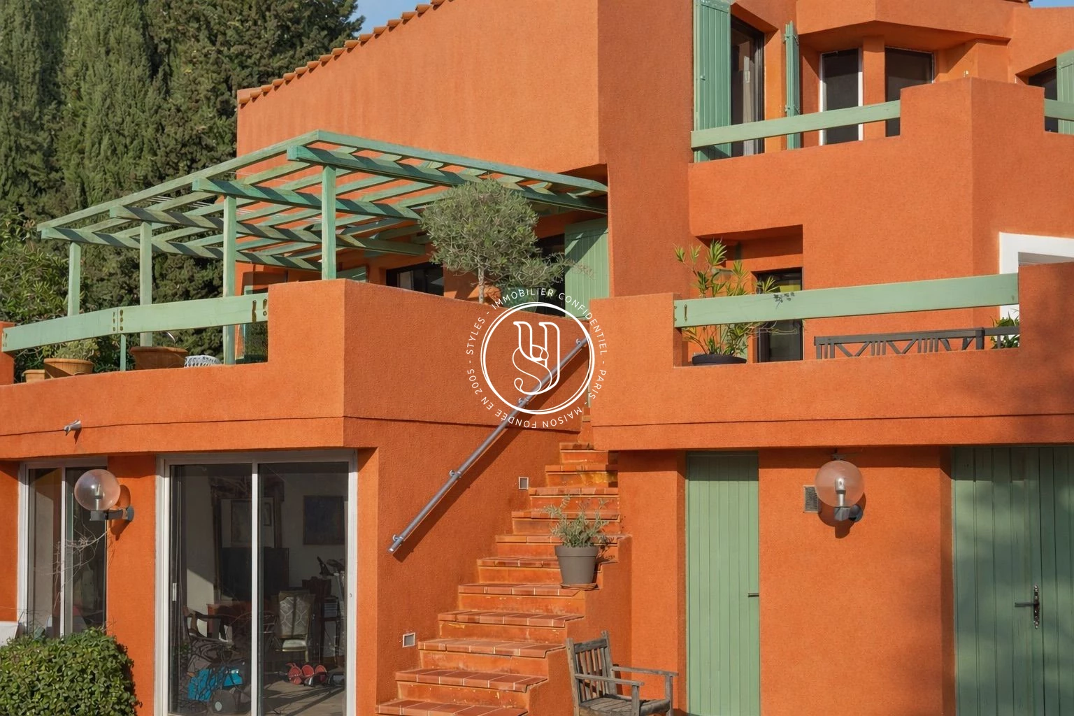 From the moment you pass through the gate, the charm takes hold: the estate is enhanced by magnificent Mediterranean trees such as olive trees, holm oaks, and pines, creating a natural backdrop that is iconic of Provence.