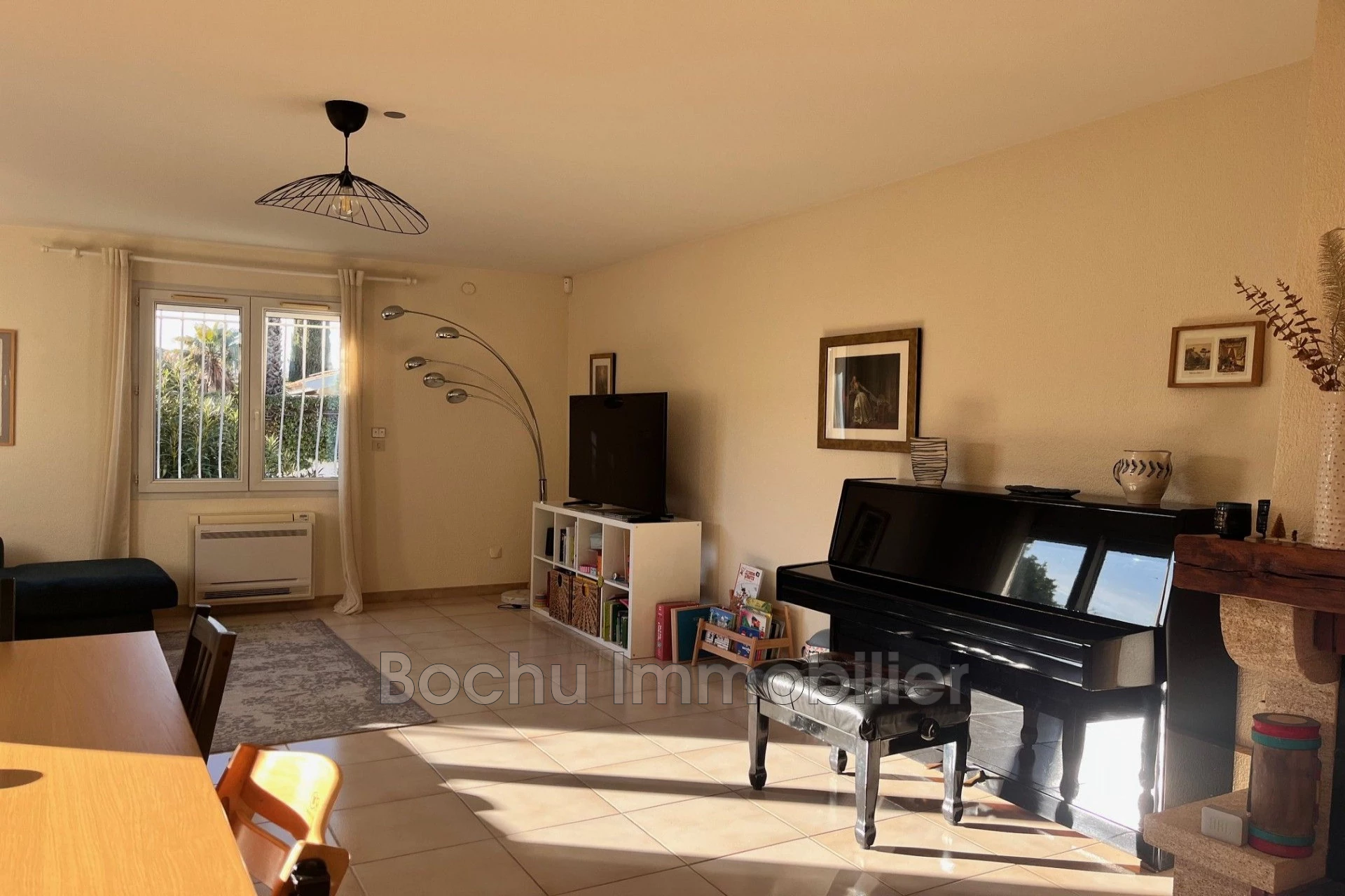 Bochu Real Estate presents this charming two-level villa featuring on the ground floor: a bright living room of about 40m² with a fireplace, an independent fitted and equipped kitchen of 15m² with direct access to the garden, 2 bedrooms, guest toilet, and a shower room.