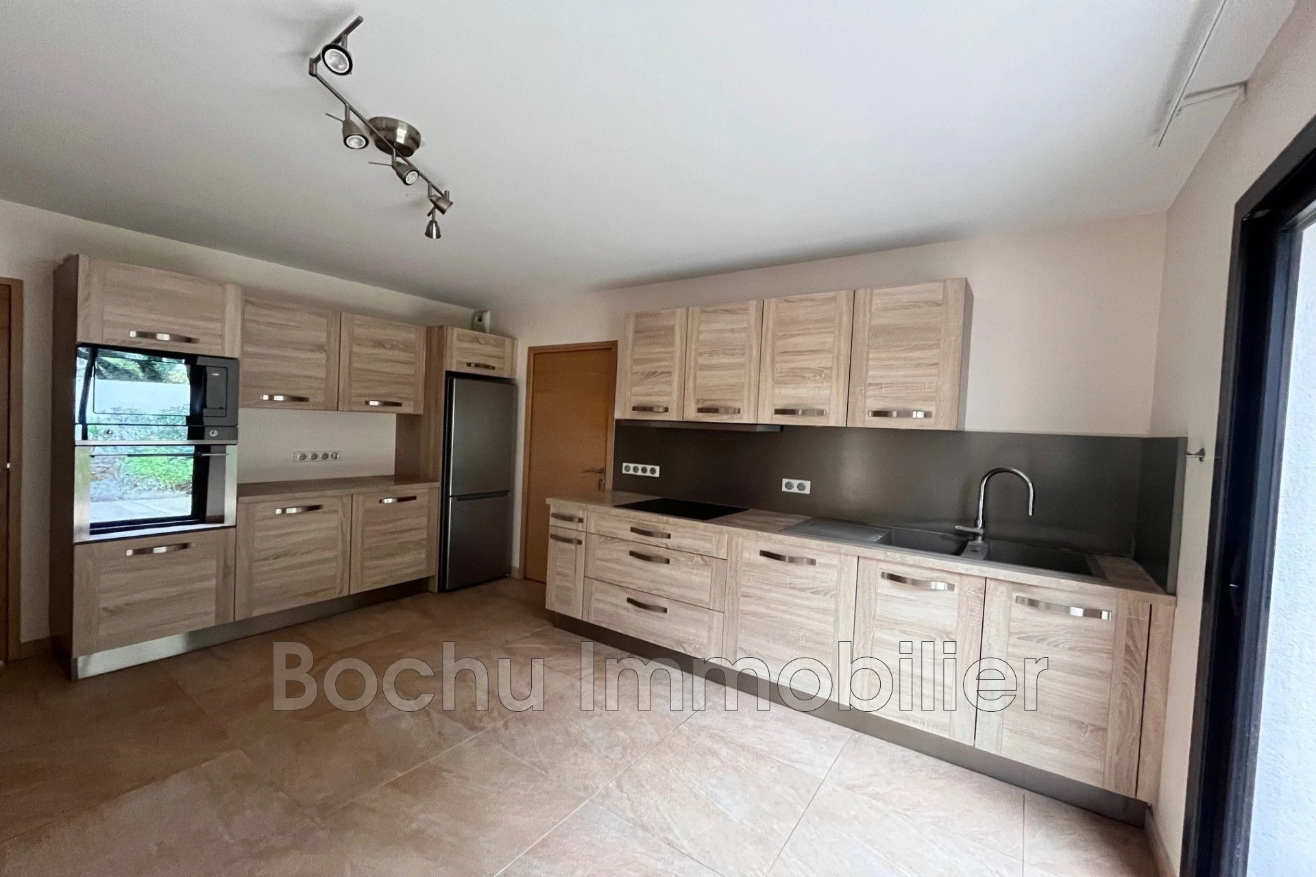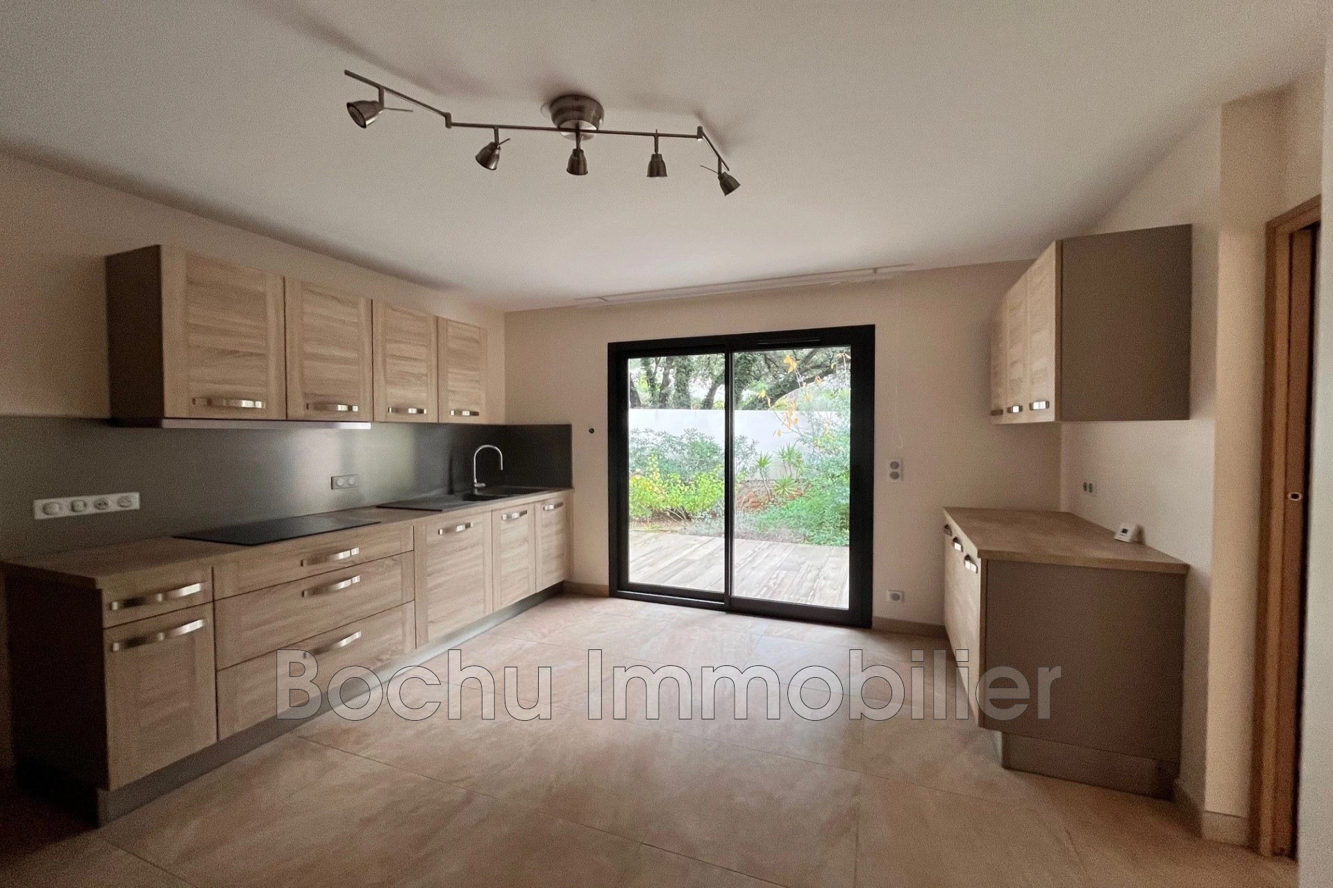 Bochu Real Estate offers you this architect-designed villa of 165m² built in 2017. On the ground floor, a large entrance hall with a closet, a 40m² living room with three large glass doors opening onto a southeast-facing terrace and garden, an independent kitchen fully fitted and equipped with an adjoining pantry/laundry room, as well as a spacious master suite of 32m² with a bathroom, private toilet, and a closed dressing room.