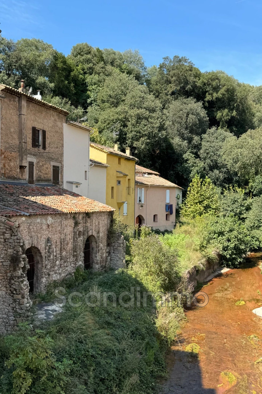 * Ground floor: an entrance hall with access to the kitchen open to the living room and dining room offering a view towards the medieval part of Les Arcs, the Parage, and towards the river. The ground floor (entrance/living room/dining room/kitchen), bright and very pleasant, is 30m2.