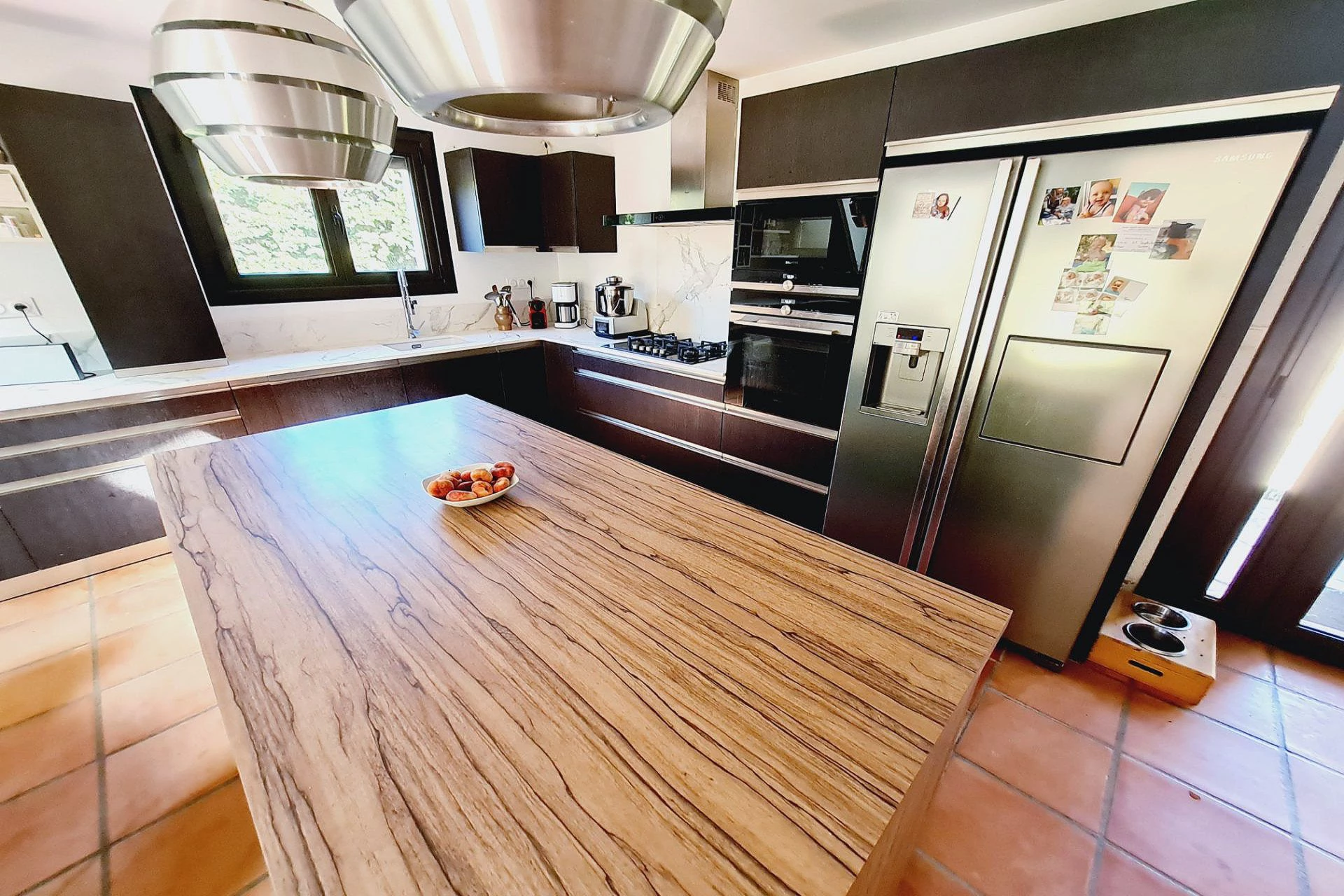 4-sided villa on more than 2000 m² of wooded land with swimming pool. The main house of 112 m² of living space is composed on one level of a cathedral living room opening onto patio and garden with fitted kitchen, 2 bedrooms, shower room, toilet, upstairs large mezzanine (possibility of 3rd bedroom).