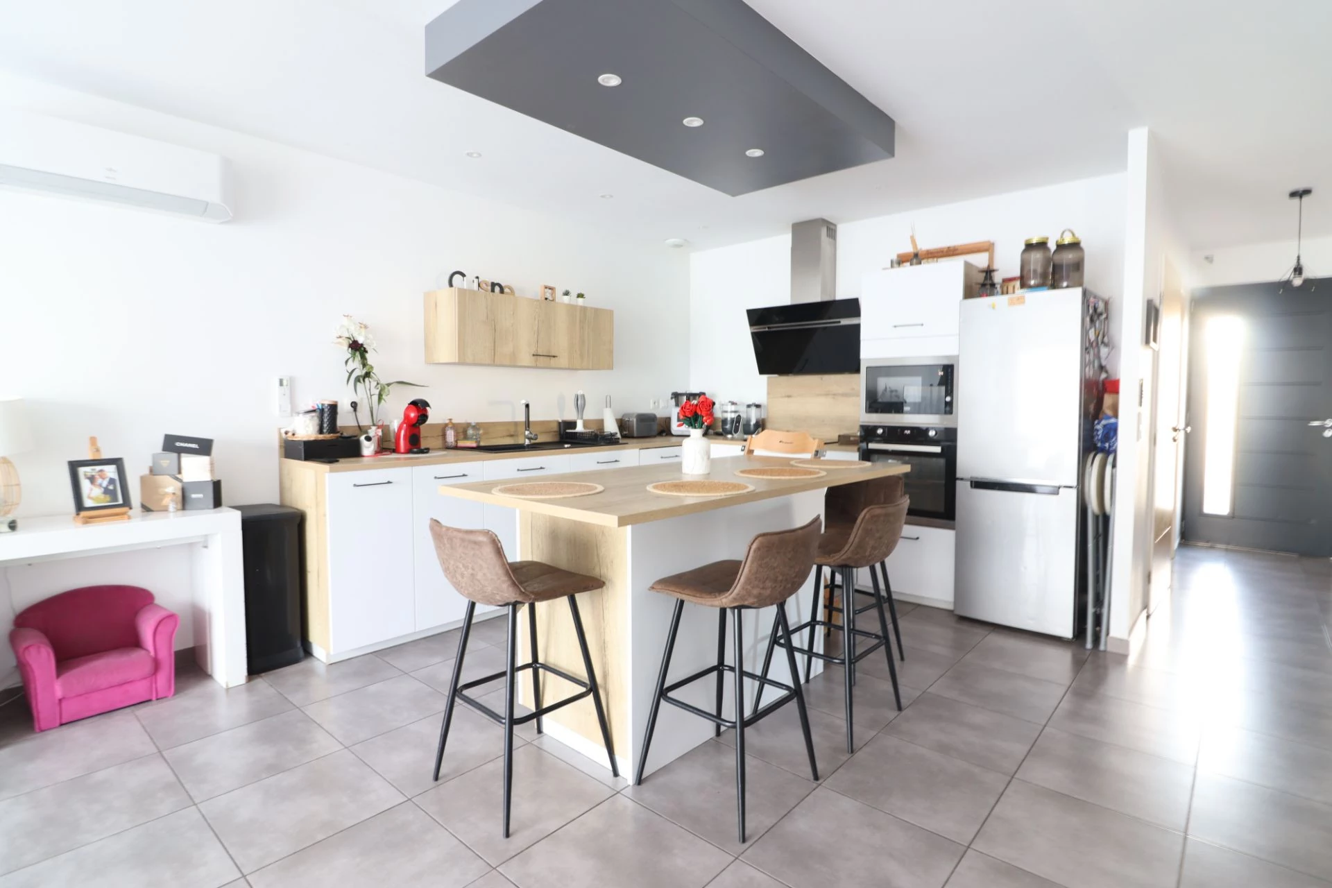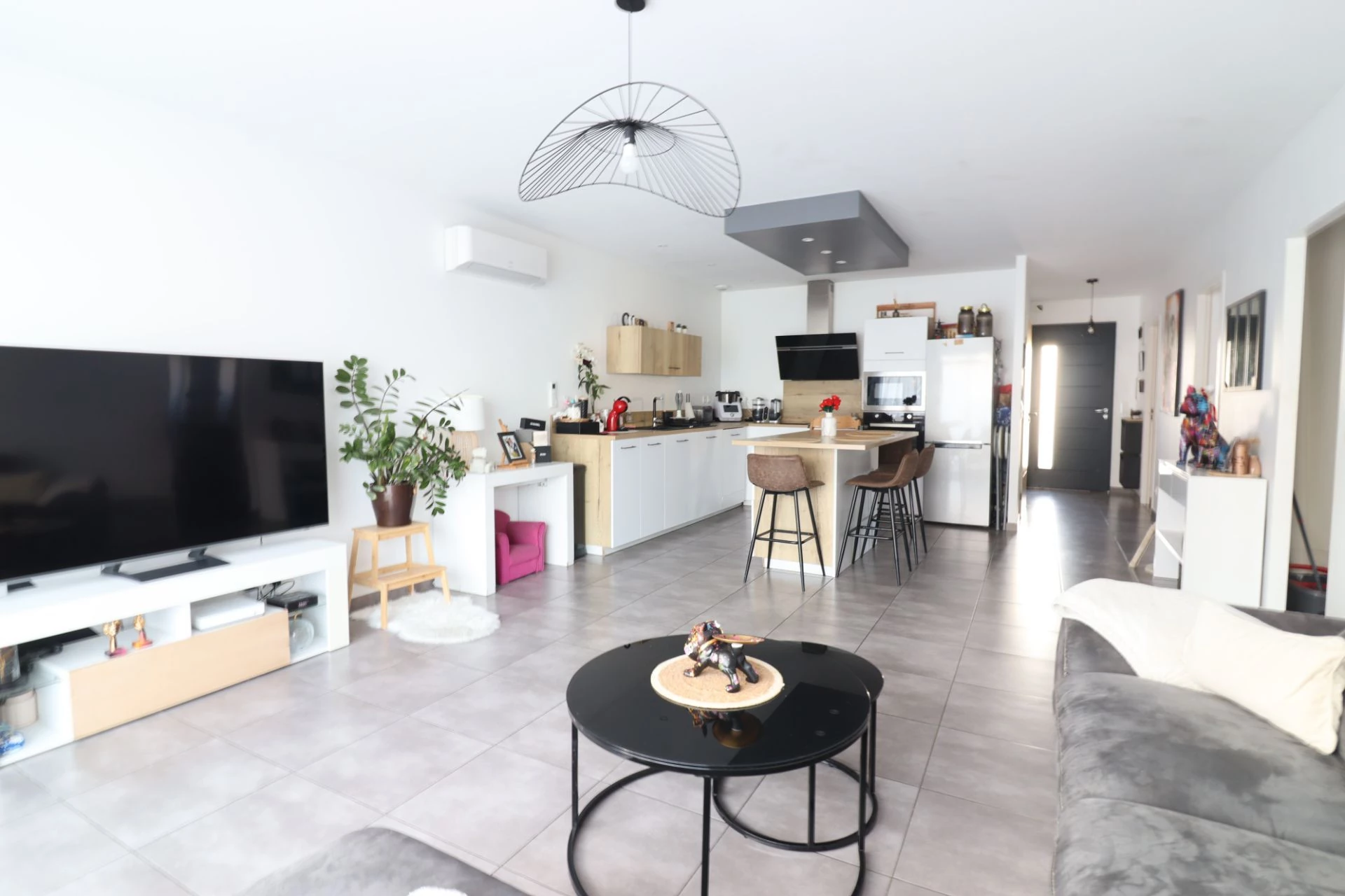 PIA - 66380 - In a pleasant residential subdivision, charming three-sided house, 89.04 m² on one level, set on a 301 m² plot offering an entrance hall, a separate toilet, 4 bedrooms, a bathroom, a fitted kitchen open to the living and dining area with access to a south-facing terrace and a garden with a swimming pool. A must-see soon!!