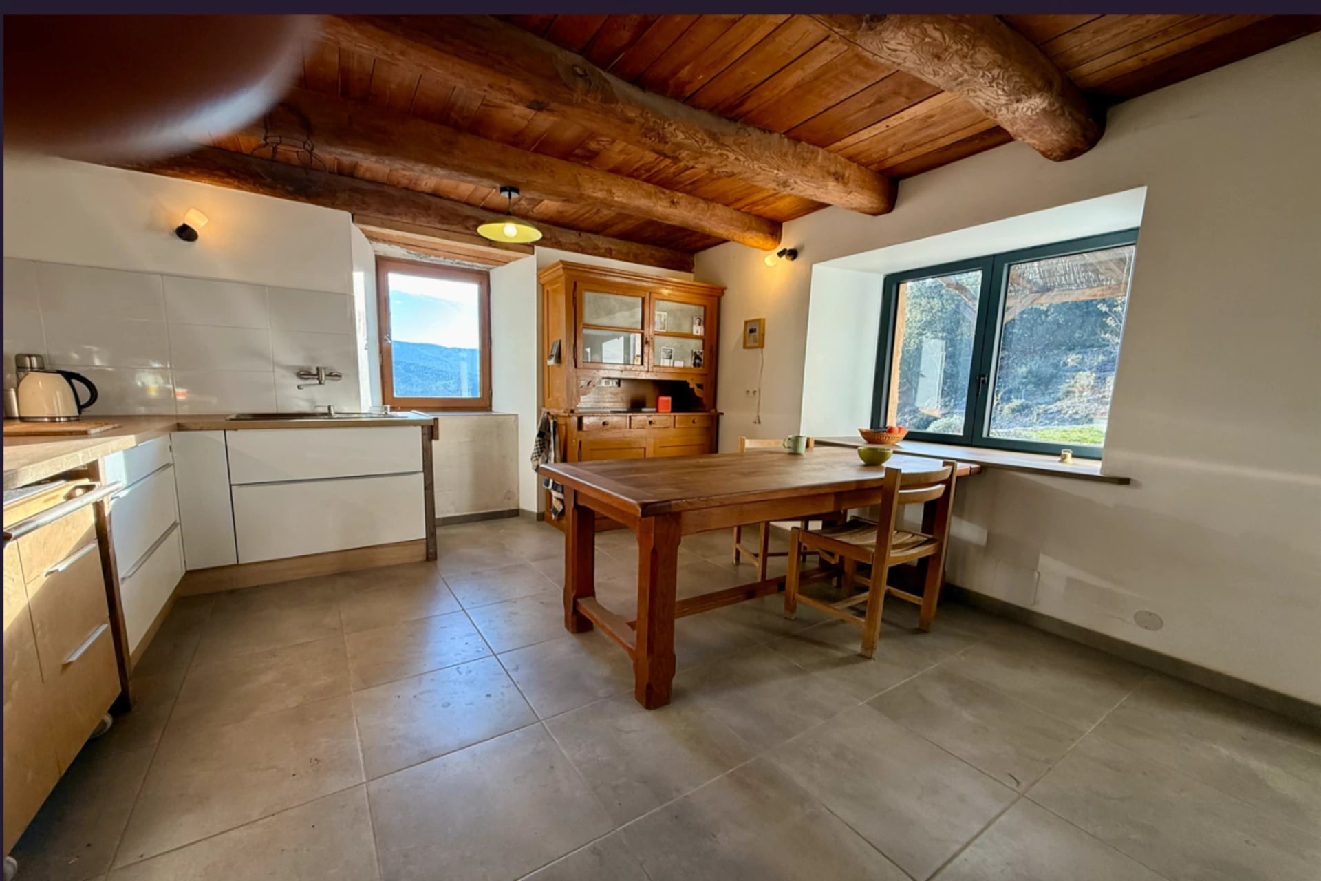 Your main residence includes: a separate equipped kitchen, a living room, and a bathroom on the terrace level.