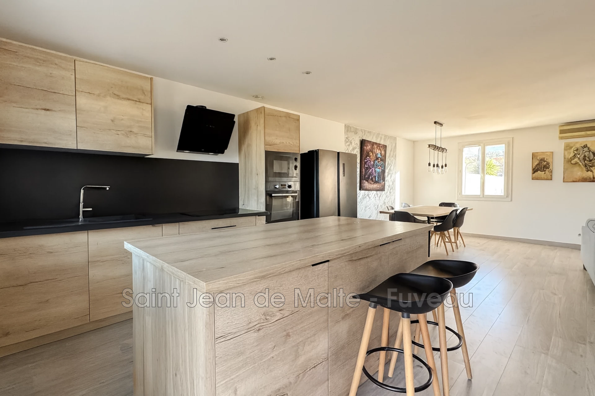 Exclusively on the highly sought-after commune of Trets, discover this beautiful single-story 5-room villa of approximately 107 m². Ideal for a family looking for a peaceful, comfortable environment close to amenities. This bright and meticulously maintained home offers generous spaces and a practical layout that will appeal to both families and lovers of open living areas. The living room, measuring around 48 m², is the heart of the house. Bathed in natural light, it features a cozy lounge with an insert fireplace, a modern open kitchen, and reversible air conditioning. This spacious and welcoming area is perfect for sharing moments with family or friends.