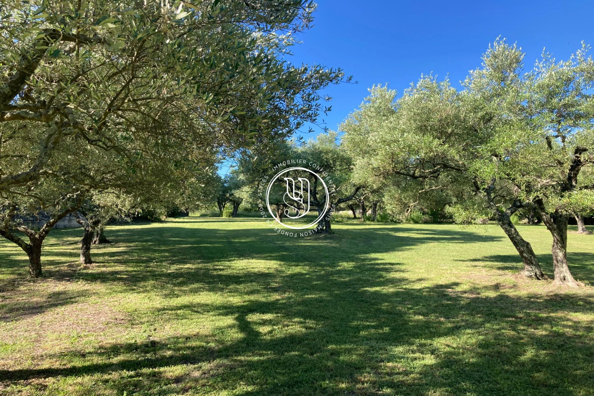 Landscaped property with low dry-stone walls, planted with pines, cypresses, almond trees and over 100 productive olive trees (the picholine variety, typical of the region), home to various birds, a thousand butterflies, a couple families of wild rabbits, and even occasional young deer! Magical views of the garrigue, all within a half-mile radius from the ducal palace, le Duché.