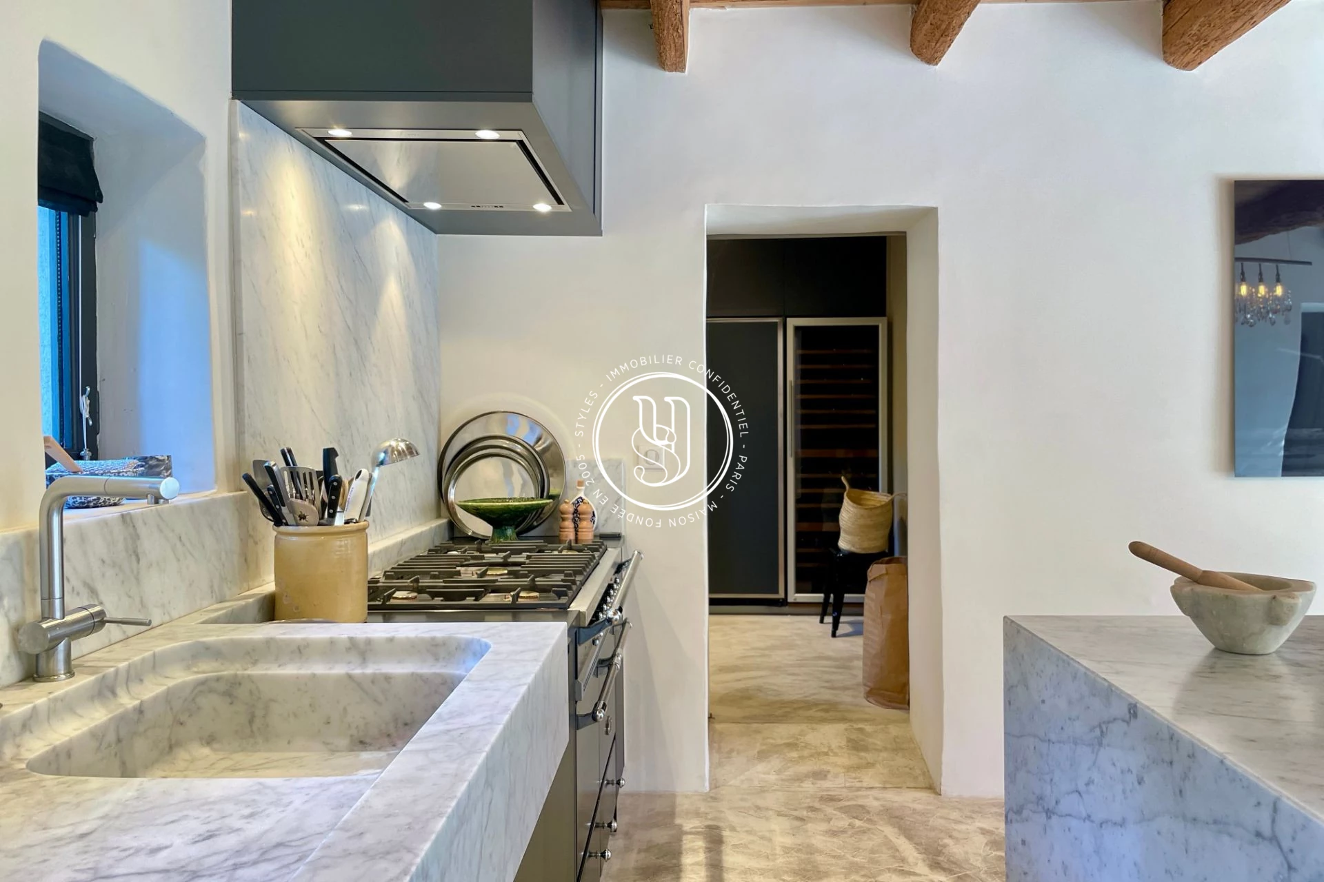 Outside, the swimming pool area (12 x 4 m) and its covered terrace invite relaxation in the shade. Every detail has been designed to fully enjoy the beautiful Provençal days in a tranquil setting.