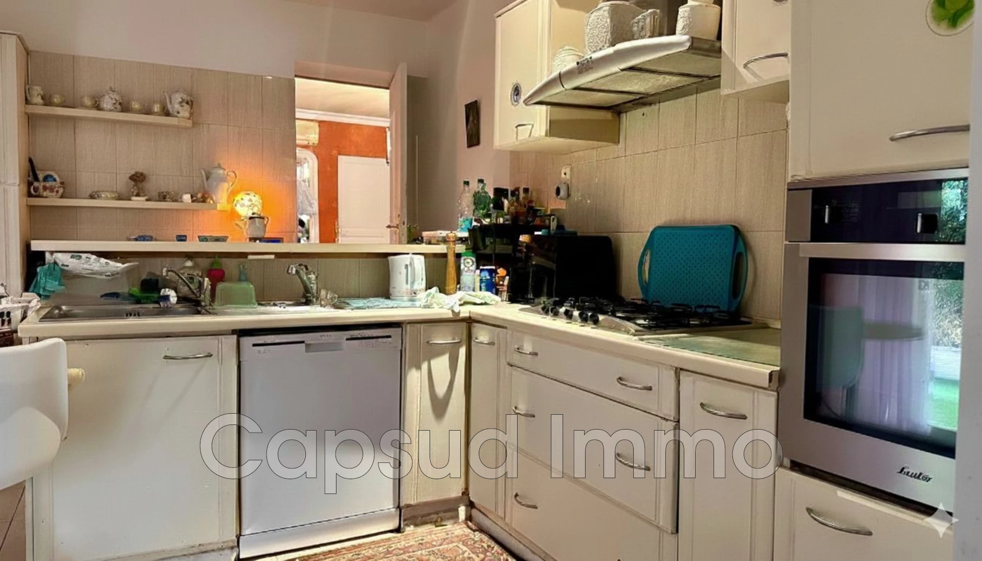 Although this detached house requires some minor renovations, it still offers several quality features such as an automatic gate and a video intercom for added security, reversible air conditioning, recent joinery, and electric roller shutters.