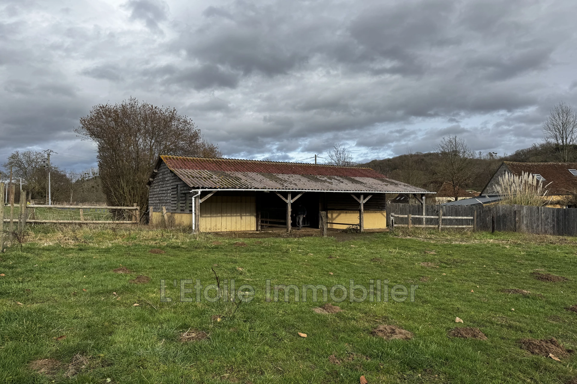 Access is through a 4-meter wide by 2.70-meter high gate. Parking is available in front of the shed. Currently set up to accommodate horses. There is a water meter. The land, currently being divided, measures 1600 m². Located in a hamlet of old houses, at the end of a quiet lane, surrounded by wooded areas.