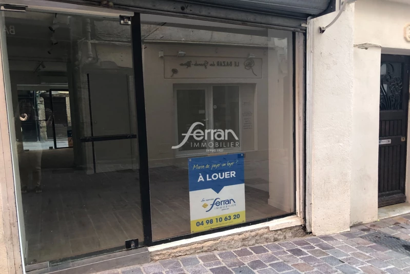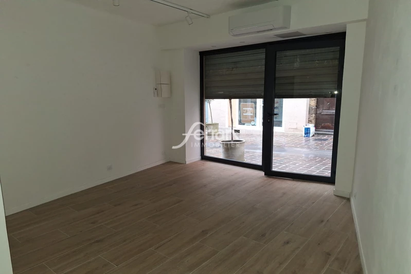 Commercial space in downtown DRAGUIGNAN, close to the two pedestrian streets and the main artery, on the ground floor, featuring an open area of approximately 77 m² arranged as an office, reversible air conditioning in the space, separate restroom, and an annex with a water point.