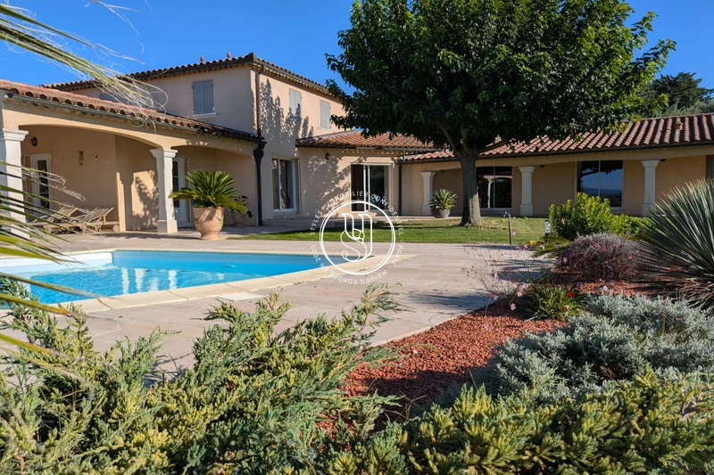 Villa with over 200 m² of living space, extensive grounds and lovely pool area. Built on a superb, well-kept plot of almost 2,700 m² with trees and a borehole, this property is sure to charm you with its exceptional, unoverlooked panoramic view over the surrounding countryside, on the edge of a non-constructible...