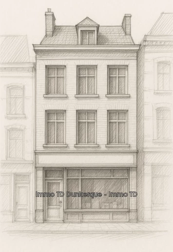 Townhouse in need of renovation, dining room 23 m², living room 14.85 m², office, kitchen, pantry, bathroom. Upstairs: 2 bedrooms of about 14 m² each, a storage room. Outbuilding, courtyard, garden. Garage 13 m² (motorcycle/bike)