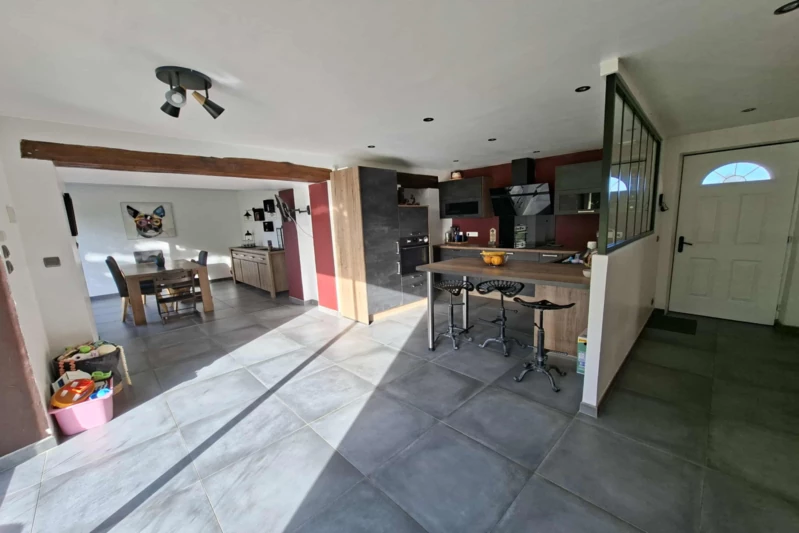 It includes on the ground floor an entrance of 2.17m², a large living room of 45m², a kitchen of...
