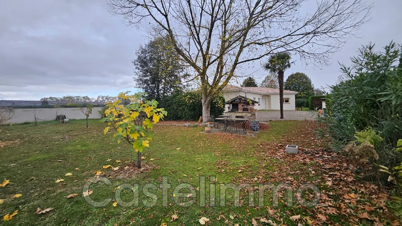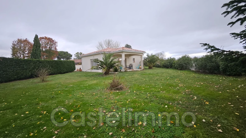 Close to the center of Castelsarrasin, this recent single-story villa built in 2020 sits on a fenced and wooded plot of approximately 1800m².