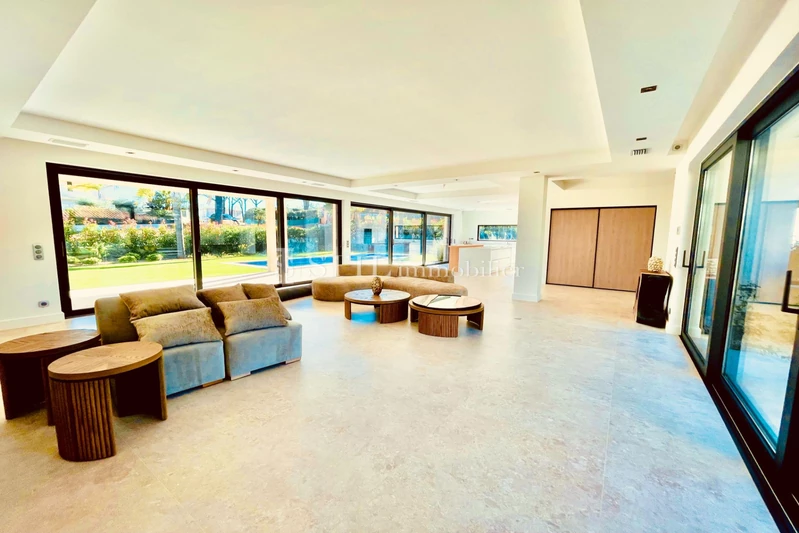 House in a private and secure domain on 2 floors. On the first floor (ground floor), an entrance leading to two bedrooms including a master bedroom with sea view, a large living room with fireplace, and an open kitchen. Access to the Pool house with BBQ and swimming pool. On the lower floor, two apartments (which...