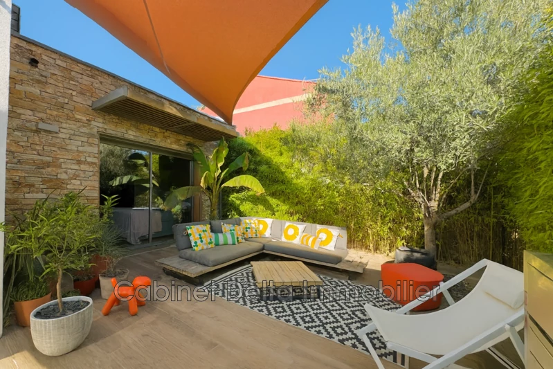 Rare in the city center of Sanary : Superb contemporary house 5 minutes walk from the center, ideal location! Equipped with 5 parking spaces, ducted air conditioning and plenty of storage, this bright 40m² house offers a living room with equipped...
