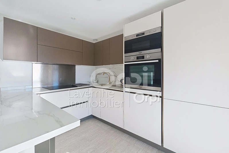 SAINT LAURENT DU VAR. Seaside. Superb apartment in a luxury residence of 104 m2 located on the seafront, accompanied by a large terrace with sea view of 110 m2 Southwest facing. Sea view from the terrace. A spacious living room of 40m2 Two large bedrooms that open onto a walkway balcony. A beautiful separate fitted...