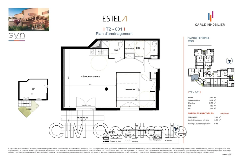 CASTELNAUDARY - Situé au rez-de-chaussée d'une résidence neuve livrée en Novembre 2025 avec ascenseur, appartement de type 2 comprenant une entrée avec placard, un séjour avec une cuisine ouverte aménagée et équipée, une terrasse de 16.80m² env., un jardin de 14.56m² env, une salle d'eau avec WC et une chambre avec...