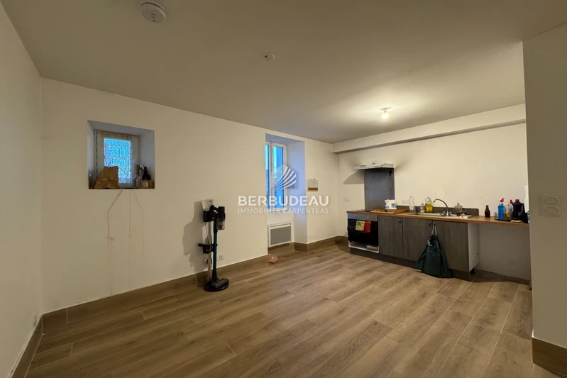 Le logement dispose d'une cuisine aménagée et équipée (plaque de cuisson, four) un espace de vie, une salle d'eau, une chambre.